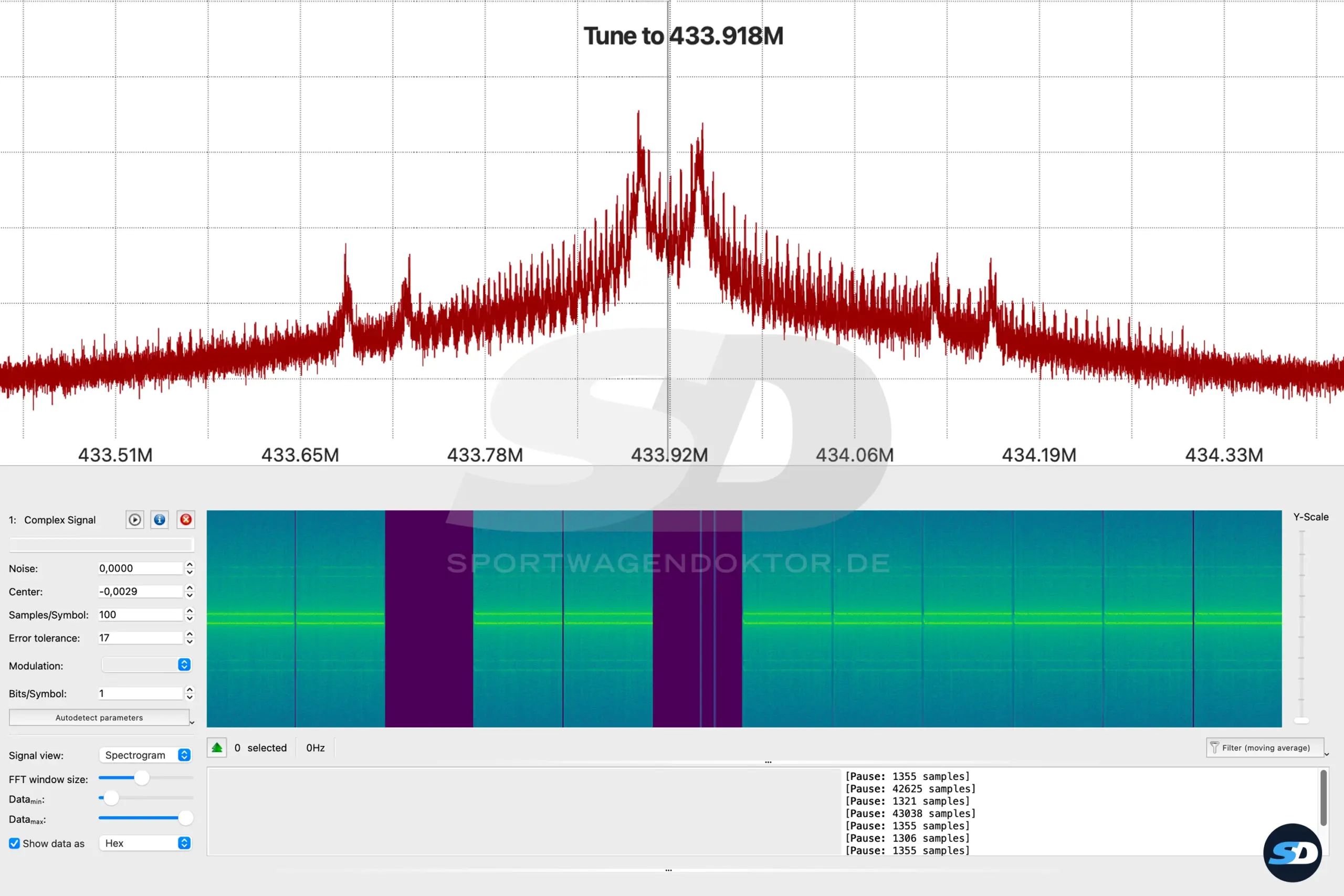 Nach Überarbeitung sendete das Funkmodul wieder ein einigermaßen plausibles Signal. Alle relevanten Sendeparameter wie Länge und Checksumme des dekodierten Signals wurden erkannt. Es gab allerdings den Fehler beim Signaltiming einzelner Strings. Kann vom Empfänger toleriert werden, muss aber nicht. Daher bekam der Kunde zunächst die Aufgabe, das Funkmodul am Porsche 996 Cabrio auszuprobieren. Der Funksender wurde direkt erkannt. Glück gehabt; Kunde sehr happy.