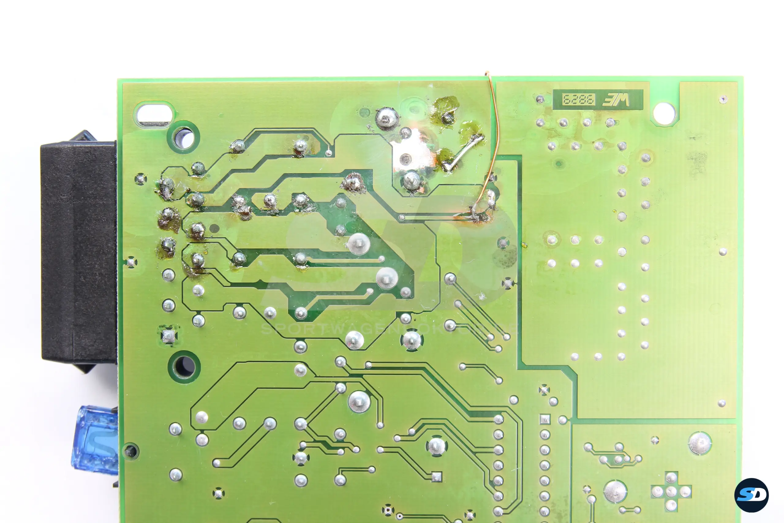 Zunächst habe ich das Alarmsteuergerät geprüft. Das “übliche Grauen”. Frei verlegte Leitungen, miese Lötstellen, Flussmittelreste entfernen – nö, zu faul. Hätte man sich zumindest die Mühe gemacht die Relais abzunehmen, hätte man gesehen, dass darunter Korrosion wütet. Aber gut, darf ja alles nichts kosten – den Rest kann man sich denken.