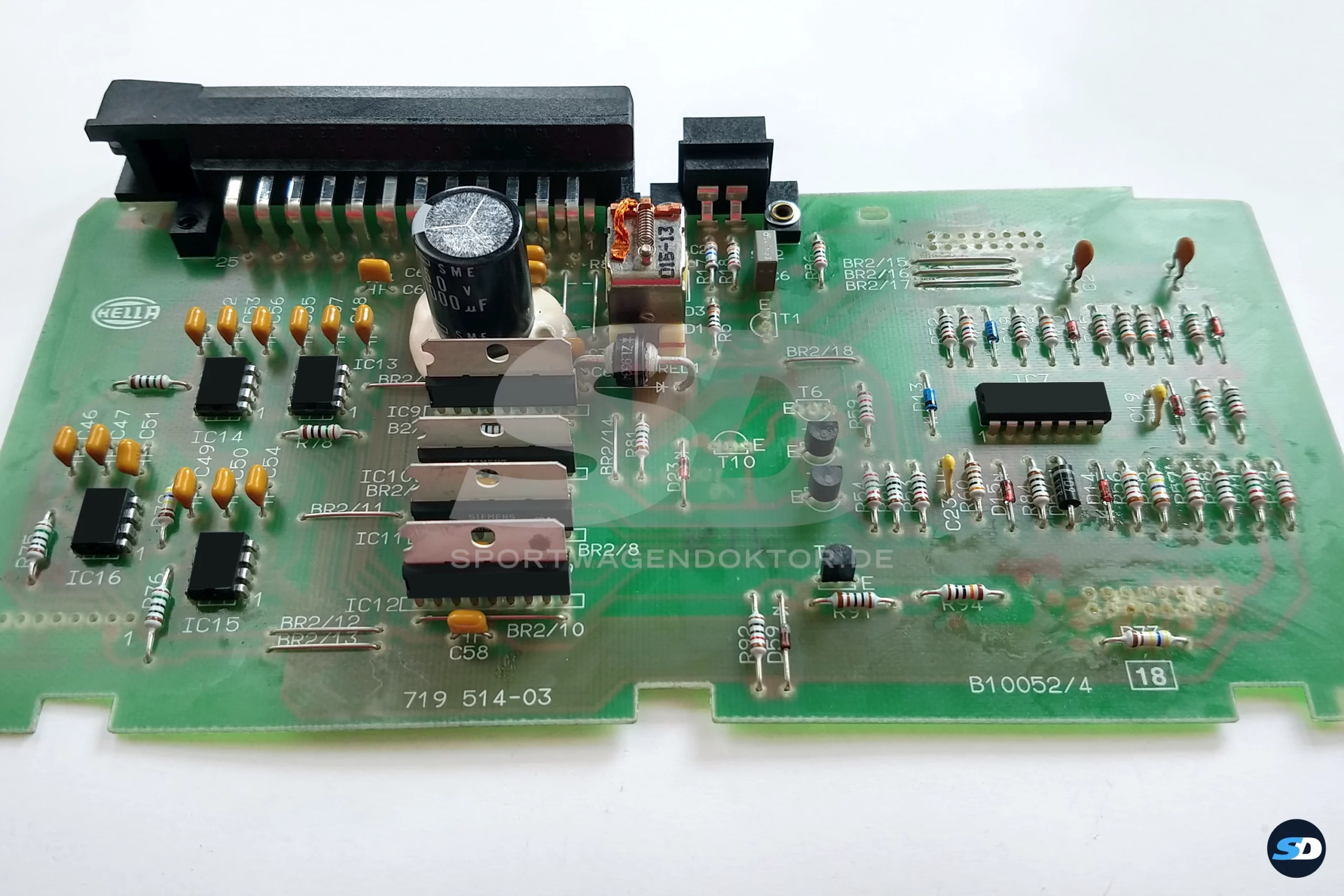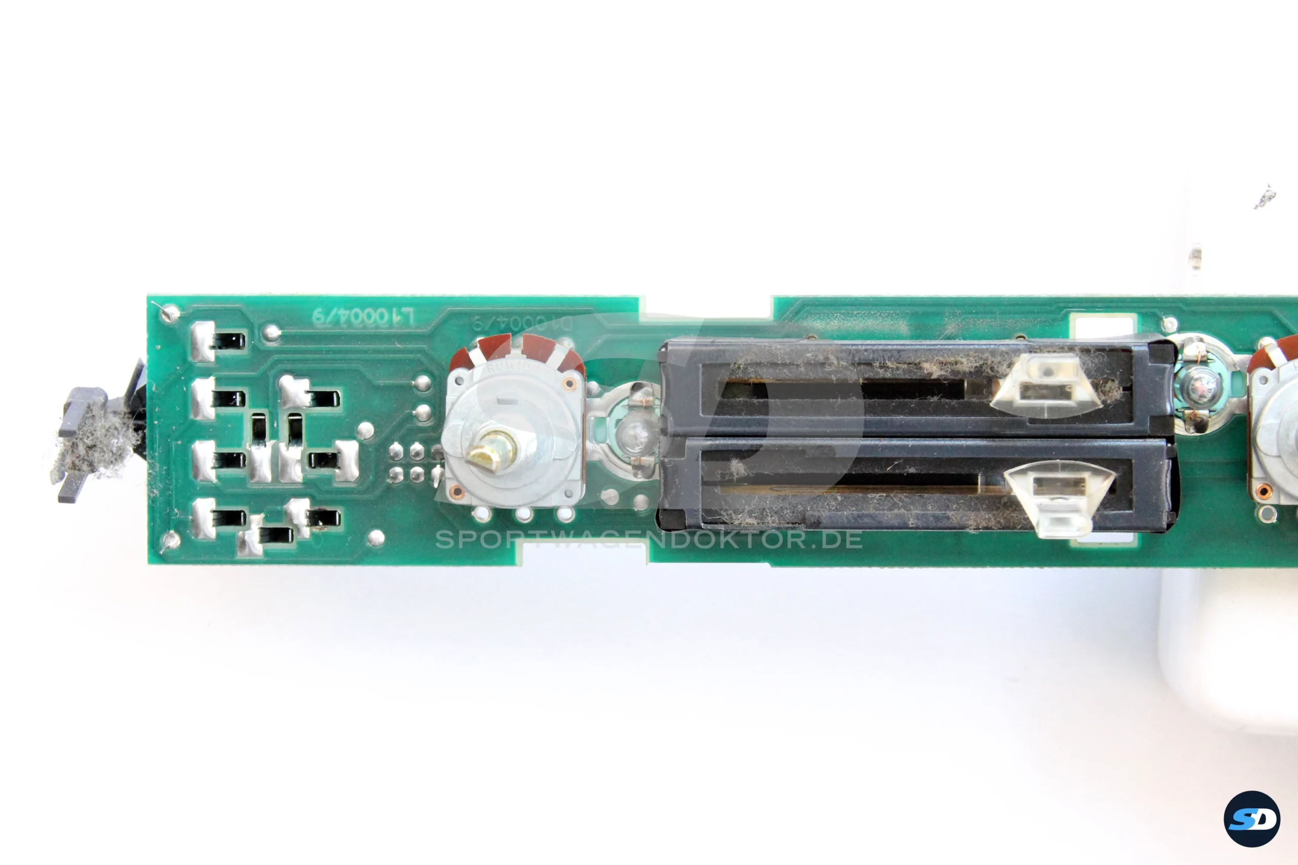 Nach Zusendung des Klimasteuergerätes 993.659.047.00 erfolgte eine erste Analyse. Auch bei diesem Klimasteuergerät zeigte sich der typische Alterungseffekt einiger elektronischer Bauteile und wie üblich war alles ziemlich verdreckt – nach 26 Jahren allerdings kein Wunder. Zudem startete der Lüfter, der der für die Ermittlung der Fahrzeuginnenraumtemperatur zwingend notwendig ist, nicht immer zuverlässig. Ein Reparaturversuch mit Austauschteilen aus einem gebrauchten Lüfter scheiterte.